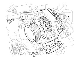 3. Disconnect the alternator connector (A) and the cable (B) from alternator "B" terminal.