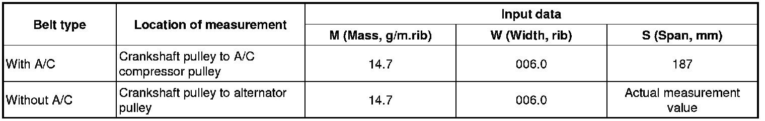 - If the engine has run for 5 minutes or more, the belt tension must be adjusted as a used belt.