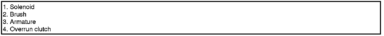 The contacts close and the starter motor cranks. In order to prevent damage caused by excessive rotation of the starter armature when the engine starts, the clutch pinion gear overruns.