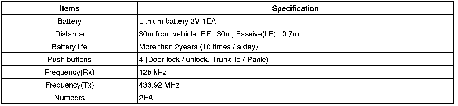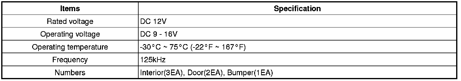 Keyless Starting System: Specifications