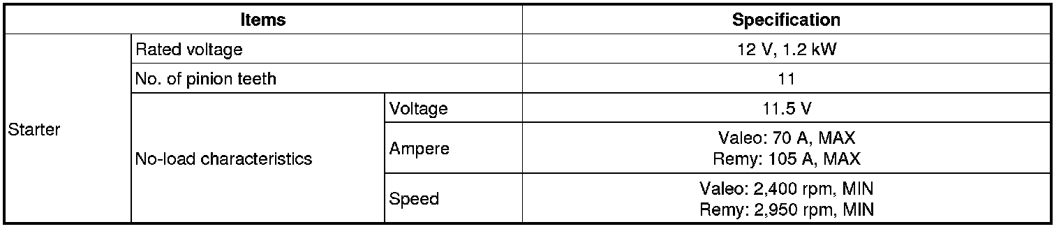 Starting System: Specifications