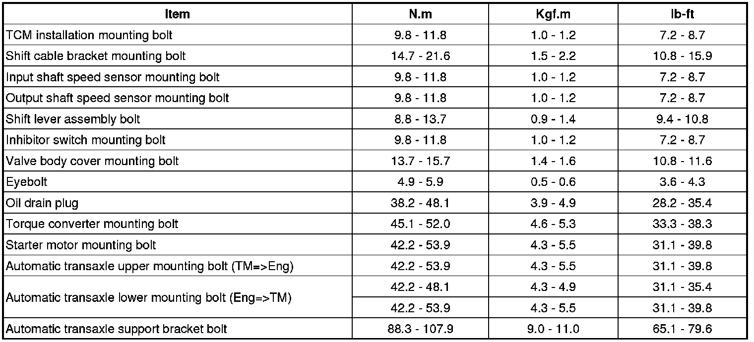 Automatic Transmission/Transaxle: Application and ID: Specifications