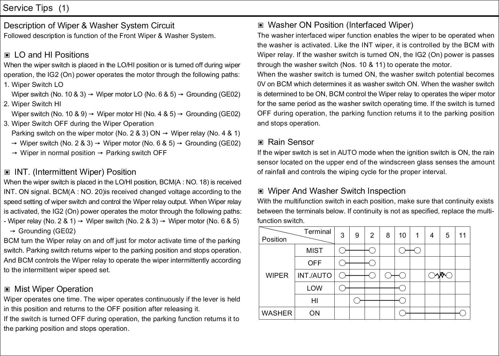Wiper and Washer Systems: Description and Operation