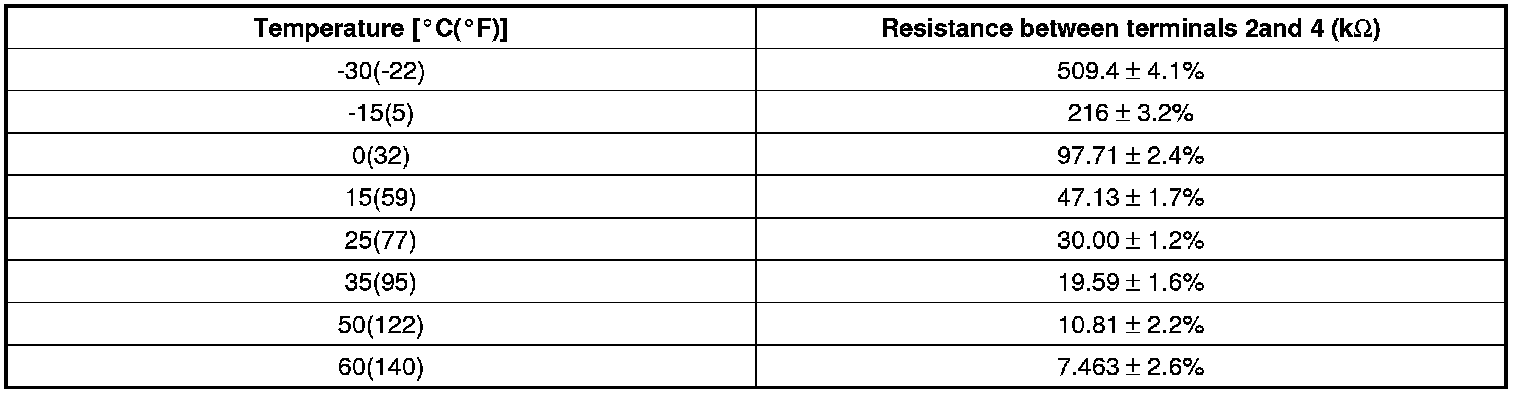 2. Blow air with changing temperature to the in car sensor air inlet. Measure sensor resistance between 2 and 4 terminals.
