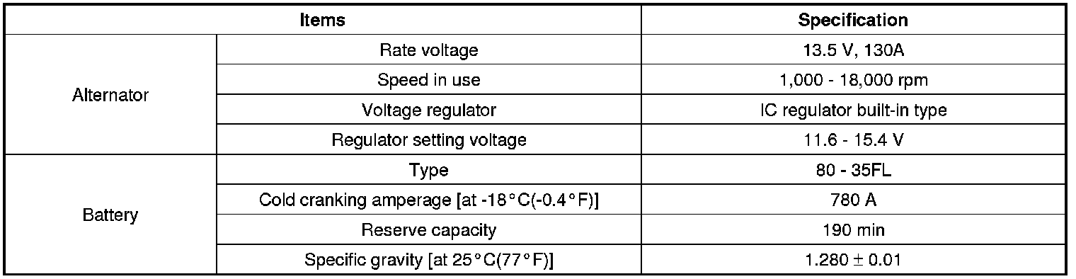 Charging System: Specifications