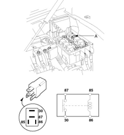 1. Remove the horn relay (A) from the engine room relay box.