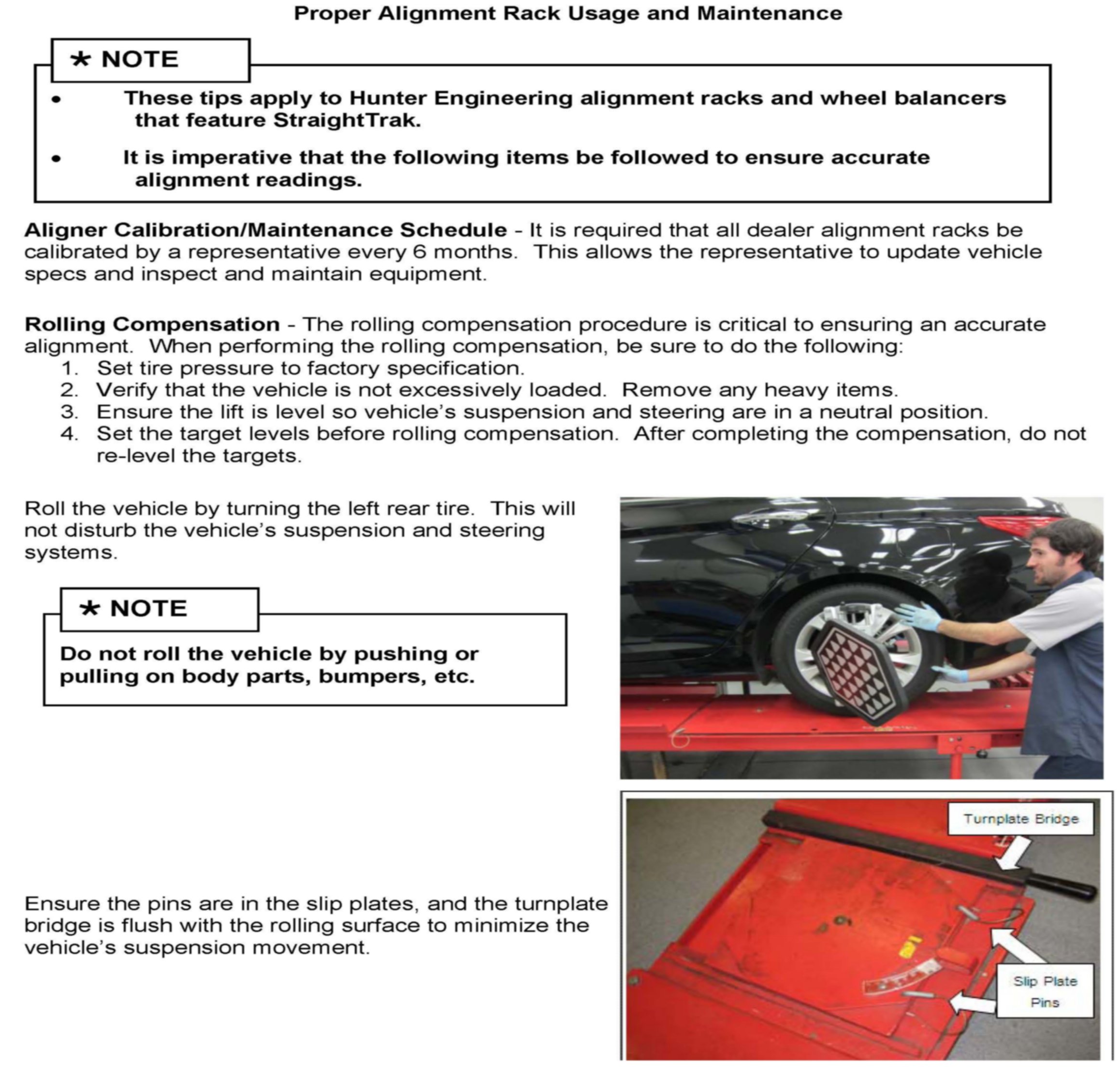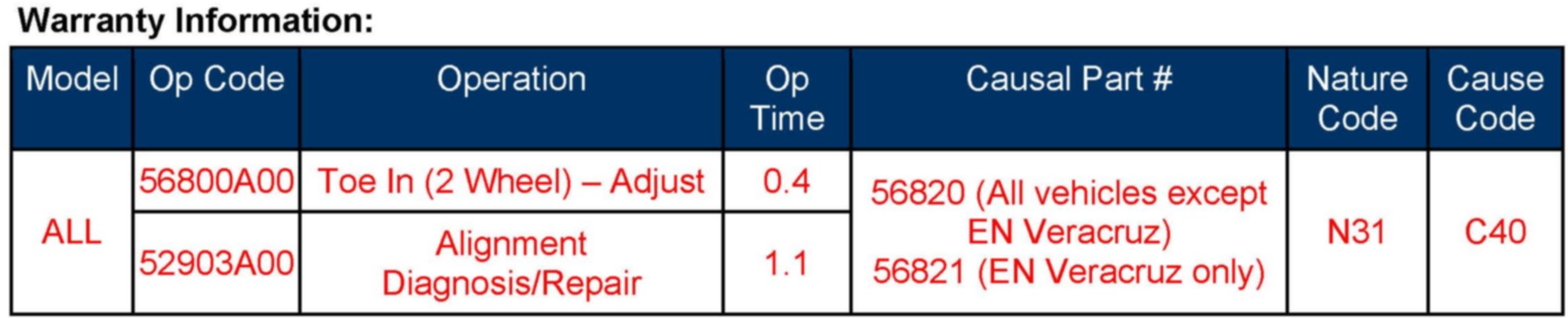 ^ Additionally, if an alignment is performed, a before and after printout from the machine is also REQUIRED to be stored with the RO for ALL warranty claims for ALL models and model years.