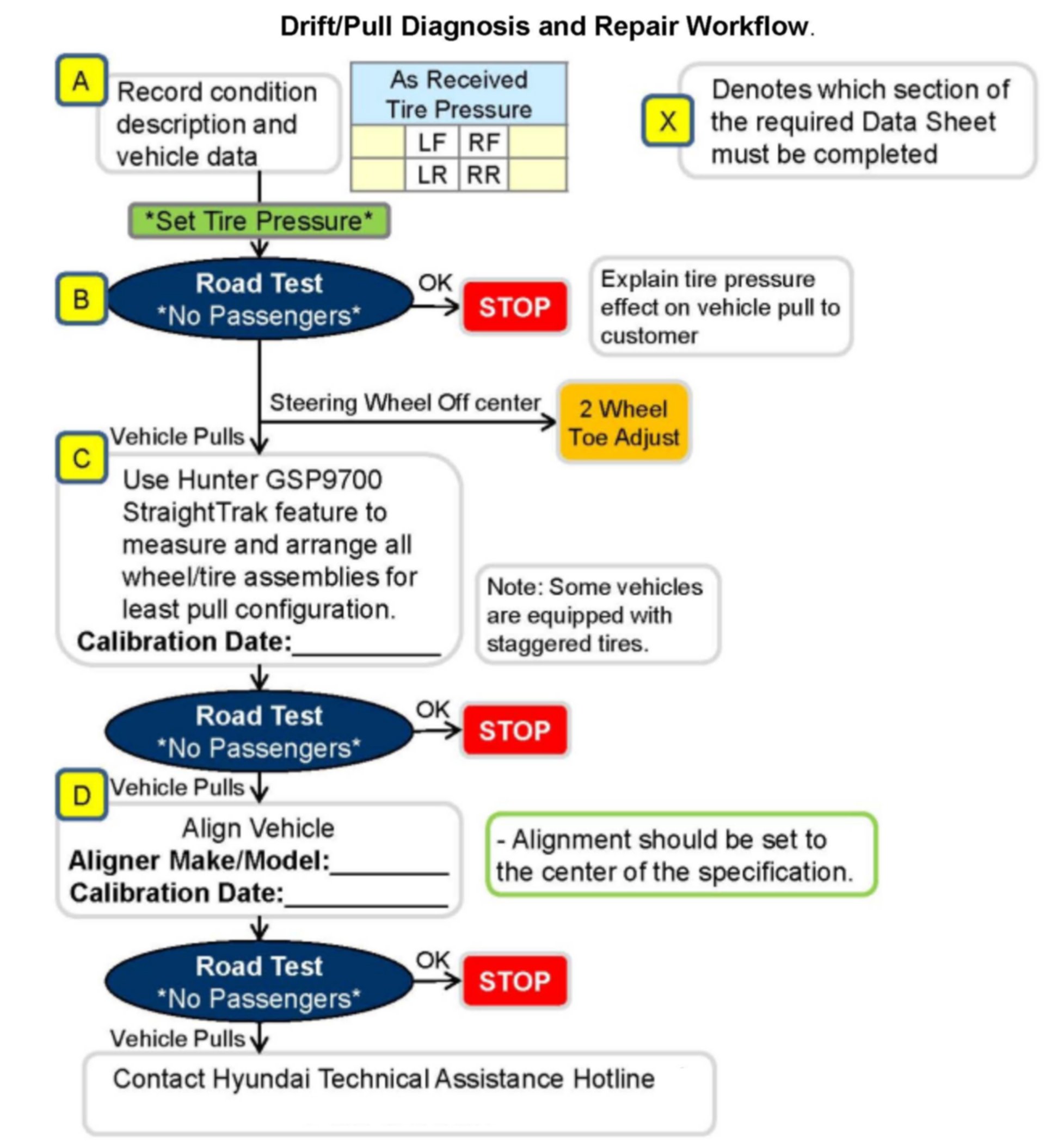 ^ Dealers and Sublet Vendors must adhere to the Vehicle Drift/Pull Repair Flowchart described below.