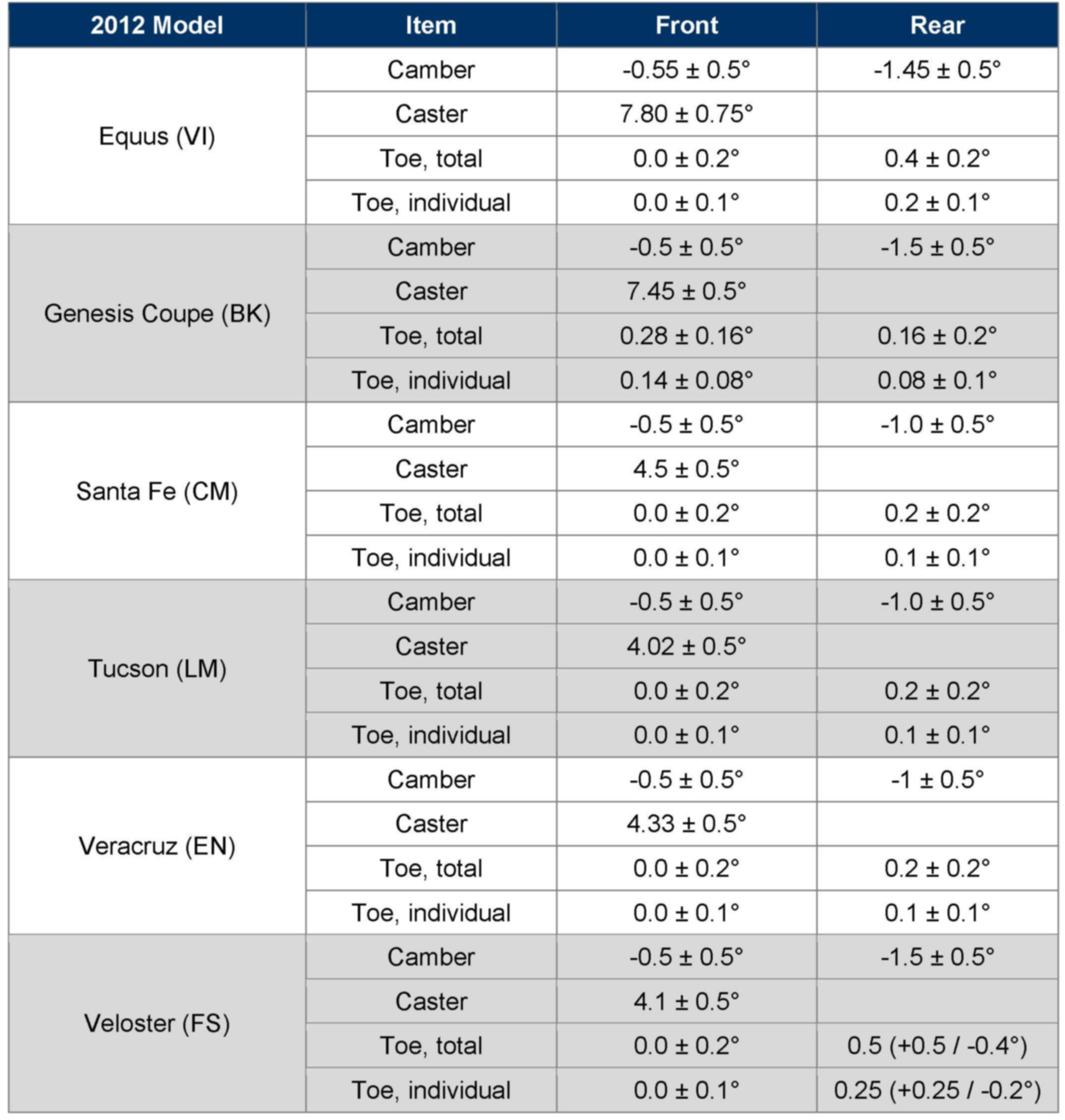 SUBJECT ALIGNMENT SPECIFICATIONS - 2012MY