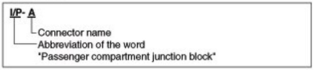 A junction block identification symbol consists of a wiring harness location classification symbol corresponding to a wiring harness location and number corresponding to the connector in the junction block.