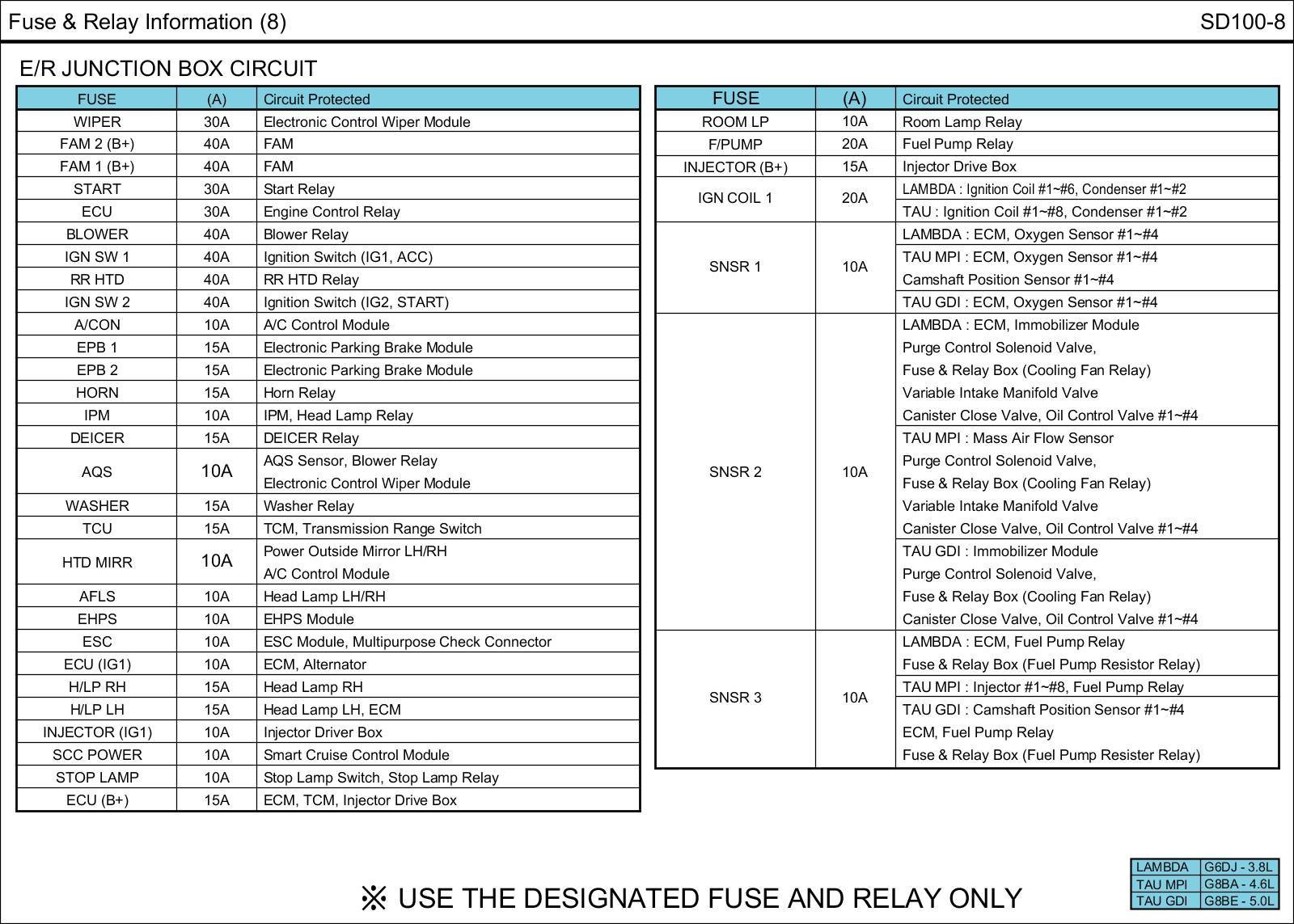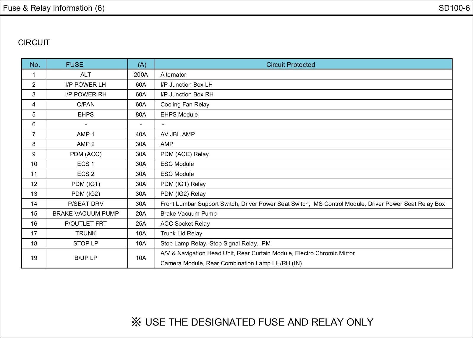 Fuse & Relay Box Circuit Details: