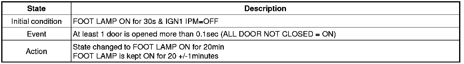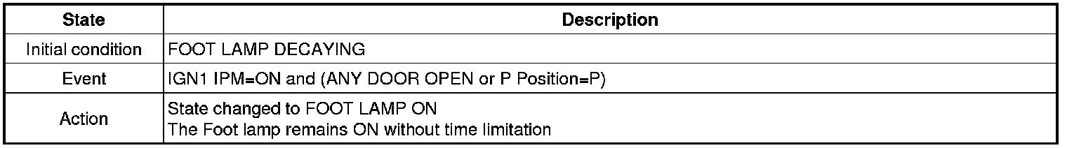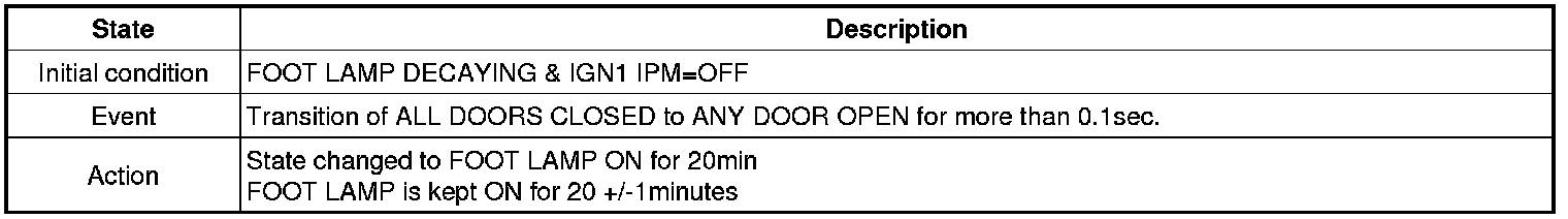 If the state of IGN Switch FAM is IGN or ST and Light Switch Status state is Auto Light Switch On, then TAIL LAMP RELAY output and HEAD LAMP LOW RELAY output are controlled by FAM with filtering time in accordance with Auto Light Out Status state change that is AUTO LIGHT Sensor's INPUT from IPM and according to specifications for each lamp described in below.