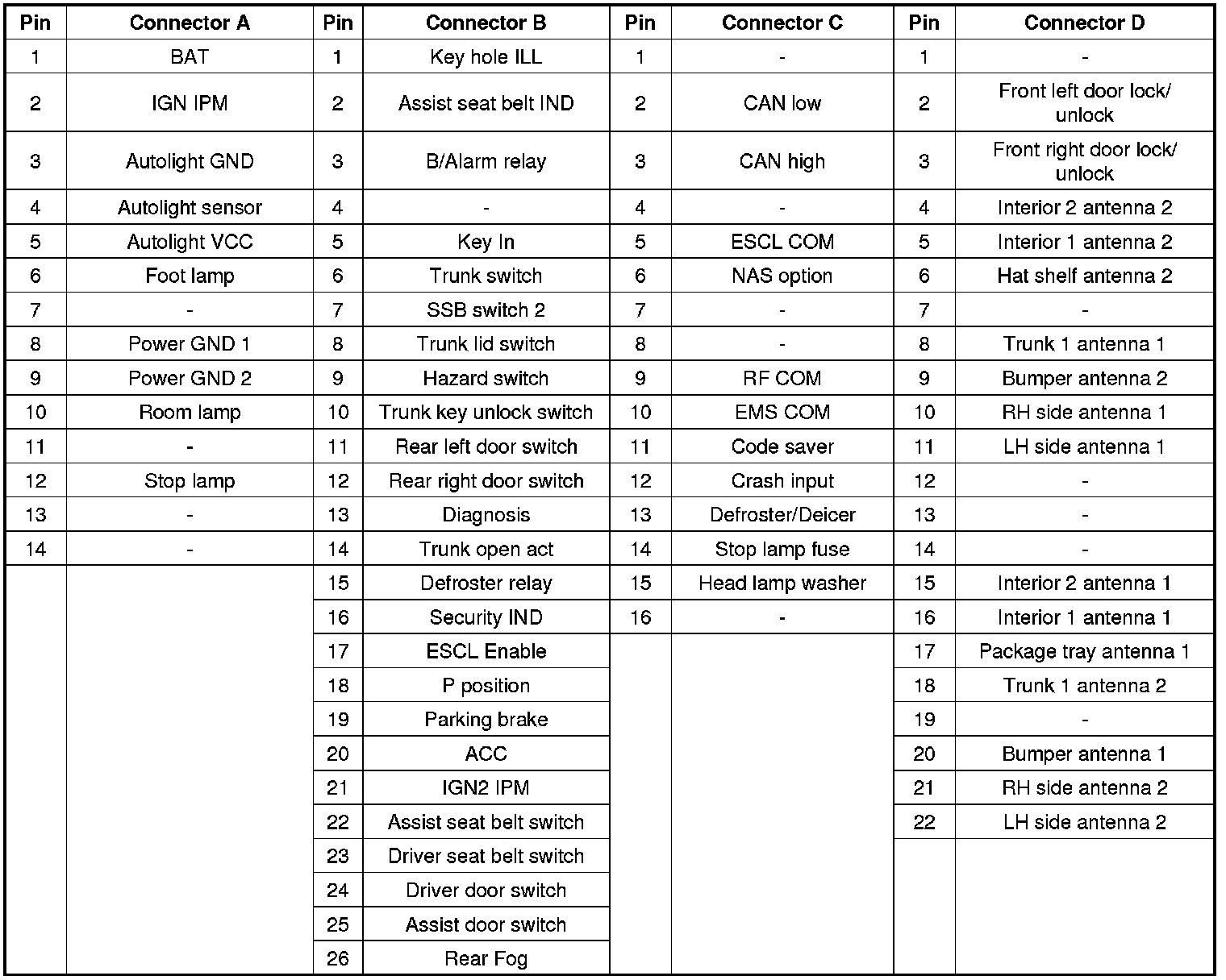 Connector Pin Information