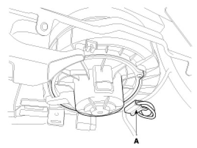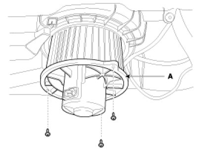 4. Remove the blower motor (A) after loosening the mounting screws.