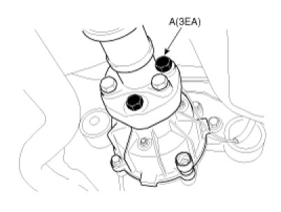 1. Remove the 4WD coupling bolts (A-3EA) mounted to the rear propeller shaft.