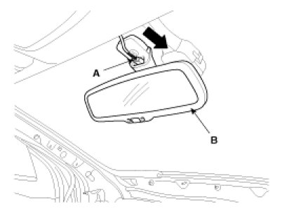 1. Push the inside rear view mirror base (A) down to remove to inside rear view mirror assembly (B).