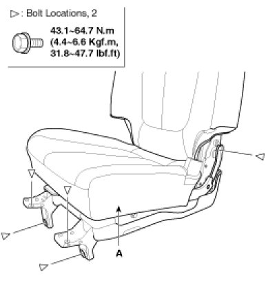 1. After loosening the mounting bolts, then remove the seat assembly (A).