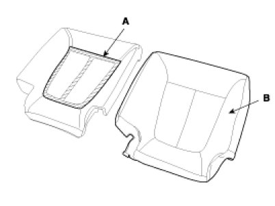 7. Disconnect the adhesives (A) on the front of seat back cover, remove the seat back cover (B).