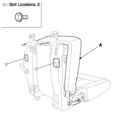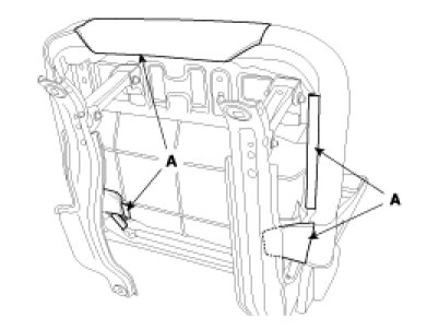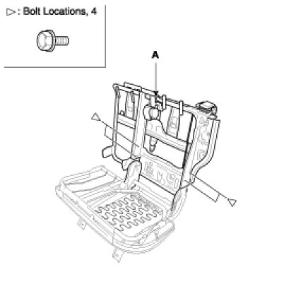 4. After loosening the mounting bolts, then remove the seat back frame (A).