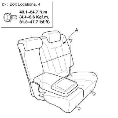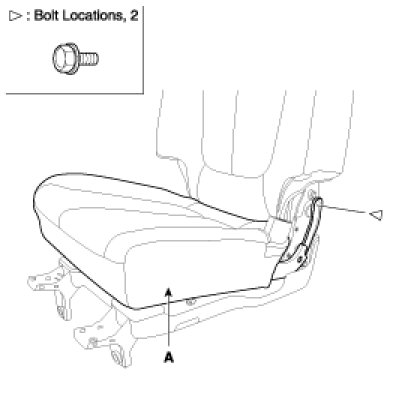 3. After loosening the mounting bolts, then remove the seat cushion (A).