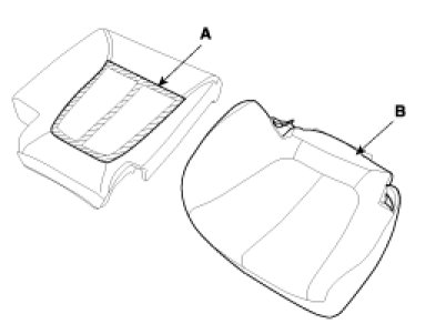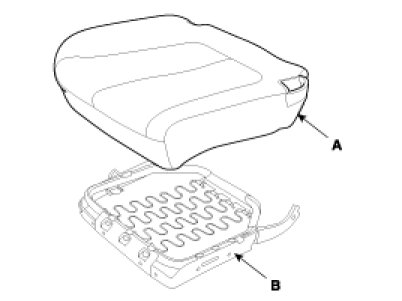 4. Disconnect the adhesives (A) on the front of seat cushion, remove the seat cushion cover (B).