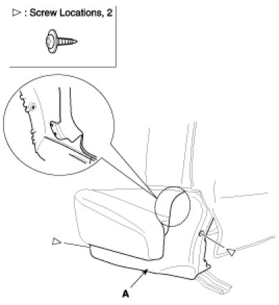 7. After loosening the mounting screw, then remove the recliner cover (A).
