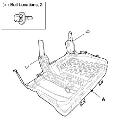 7. After loosening the mounting bolts, then remove the seat cushion frame (A).
