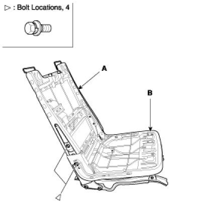 3. After loosening the mounting bolts, then disconnect the seat back frame (A) and seat cushion frame (B).