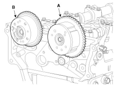 14. Remove the intake CVVT assembly (A) and exhaust CVVT assembly (B).