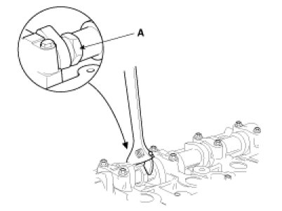 (2) Remove the exhaust camshaft upper bearing (A).