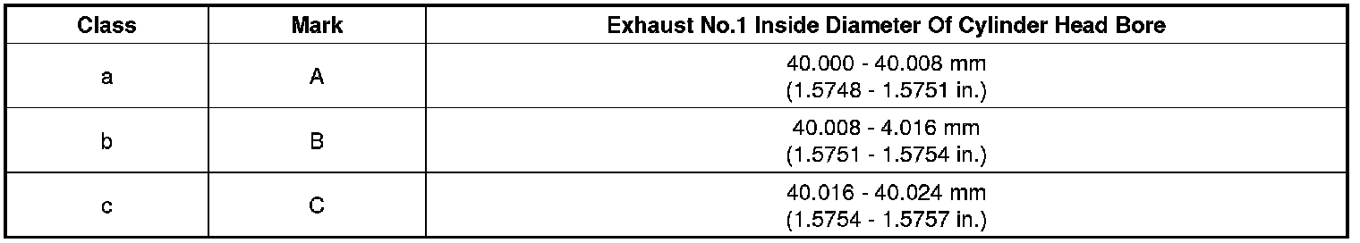 Intake / Exhaust : 5.500 - 5.512mm (0.216 - 0.217in.)