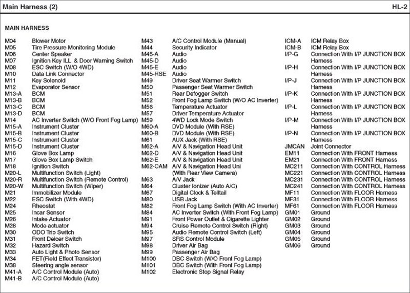 Main Harness Index: