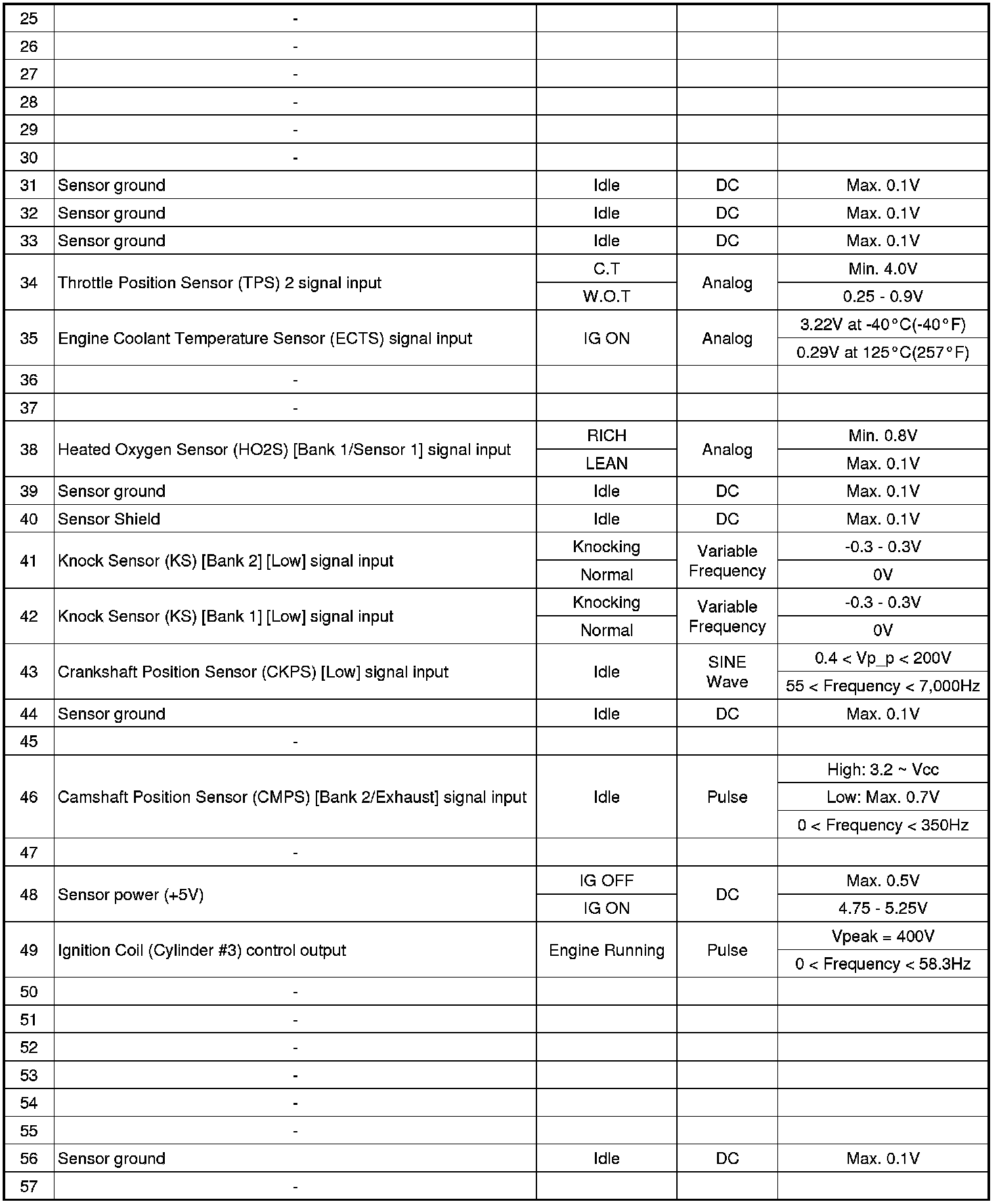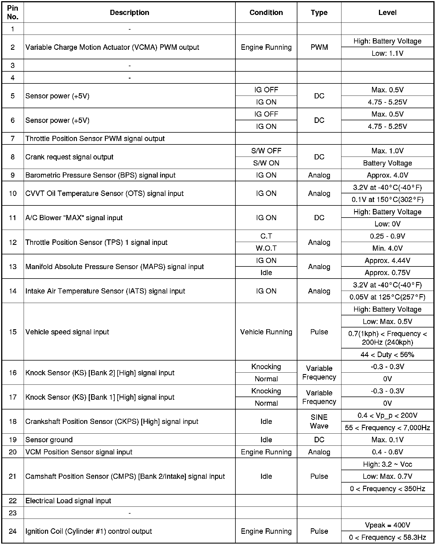 ECM Terminal Input/Output Signal
