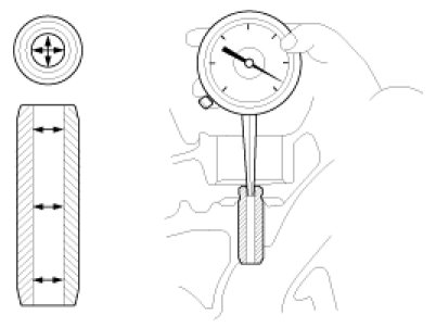 2. Using a caliper gauge, measure MLA tappet bore inner diameter of cylinder head.