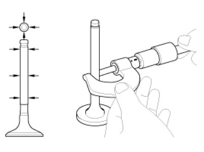 (2) Using a micrometer, measure the diameter of the valve stem.