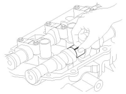 At this time, attend not to be installed to oil hole of camshaft-inlet.