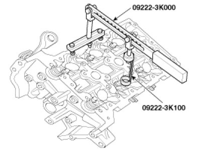 (3) Using the SST(09222 - 3K000, 09222-3K100), compress the spring and install the retainer locks. After installing the valves, ensure that the retainer locks are correctly in place before releasing the valve spring compressor.