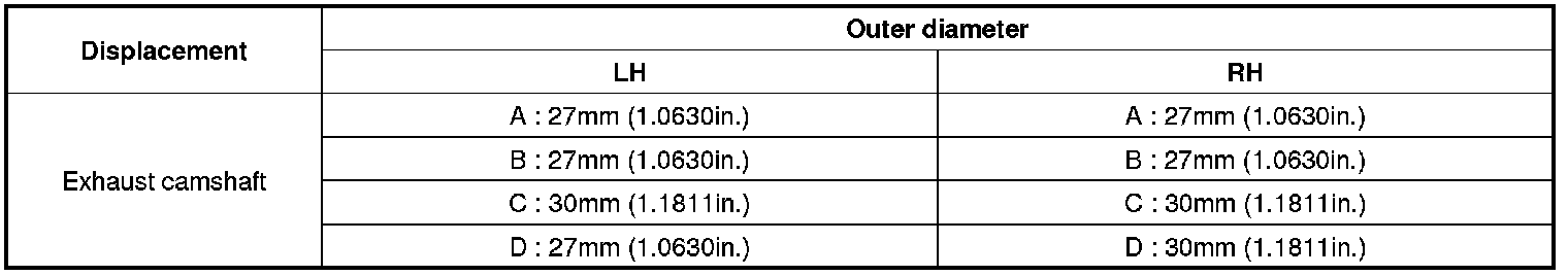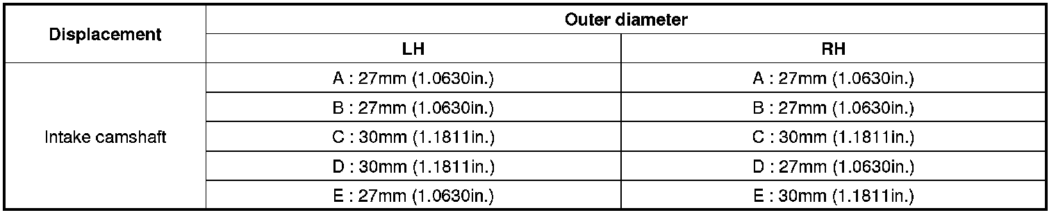 As for camshaft identification, refer to the table below.