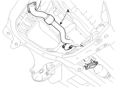 13. Disconnect the power steering fluid return hose (A) for drain the fluid, and remove the hose that connecting between the power steering pump assembly and the fluid reservoir tank. .