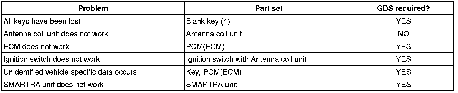 If the PCM(ECM) status and the key status do not match for teaching of keys, the tester procedure will be stopped and a specific fault code will be stored at PCM(ECM).