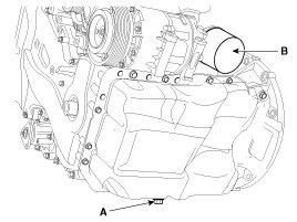 (2) After lifting the car, remove the oil drain plug (A) and drain oil into a container.
