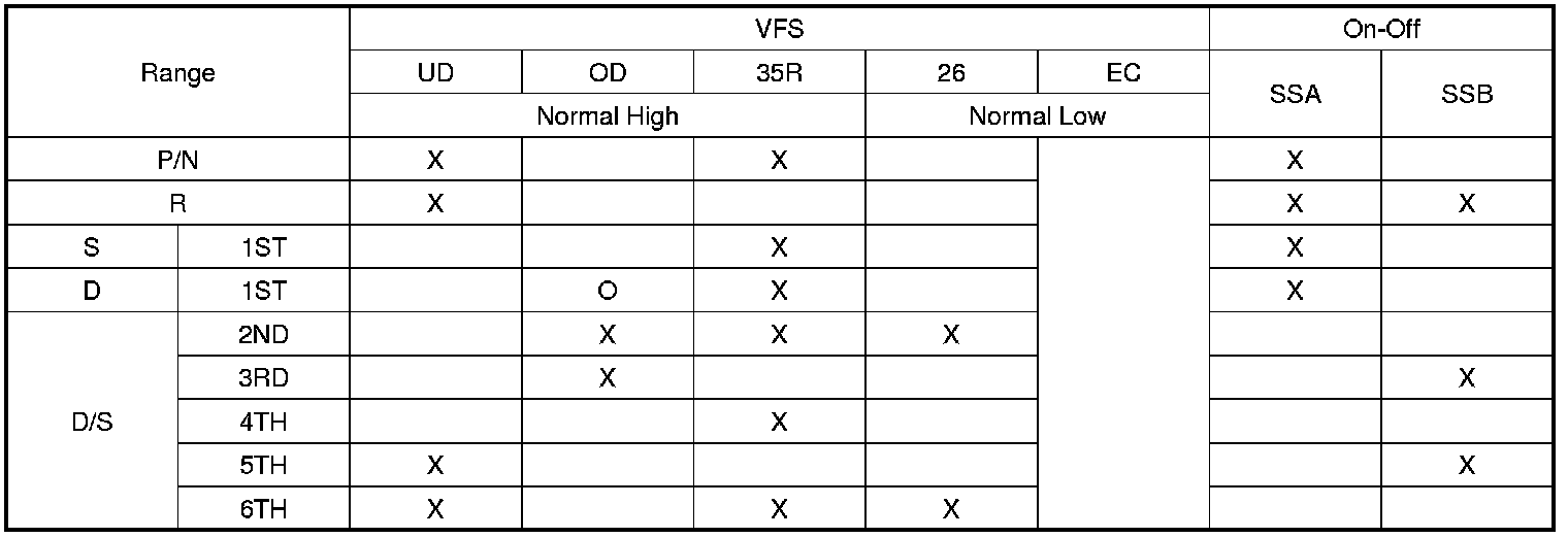 O : ON (8 kph [up]), OFF (6 kph [down])