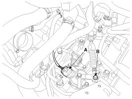 6. Remove the manual control lever (B) and the washer after removing a nut (A).