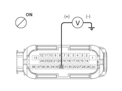 2. Turn the ignition switch ON, measure the voltage between terminal 32 of the ABS control module harness side connector and body ground.