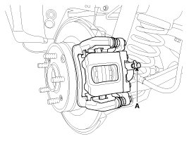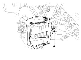 5. Pump the brake pedal several times, and then loosen the bleeder screw until fluid starts to run out without bubbles. Then close the bleeder screw(A).