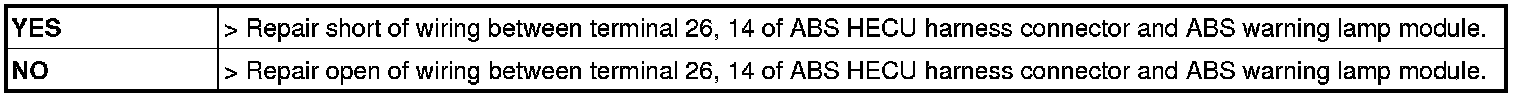 1. ABS warning lamp turns on when ABS is malfunctioning.