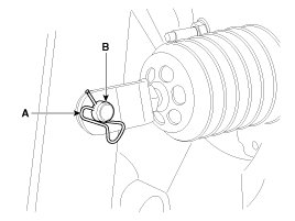 5. After inserting, turn the stop switch (A) 45° clockwise, and then assemble locking plate (B) by pushing.