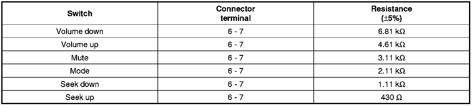 1. Check for resistance between No.6 and No.7 terminals in each switch position.