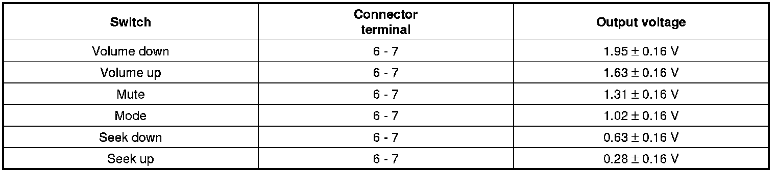 2. Check for voltage between No.6 and No.7 terminal in each switch position.