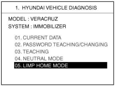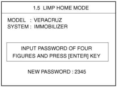 If the PCM(ECM) detects the fault of the SMARTRA or transponder, the PCM(ECM) will allow limp home function of the immobilizer. Limp home is only possible if the user password (4 digits) has been given to the PCM(ECM) before. This password can be selected by the vehicle owner and is programmed at the service station.